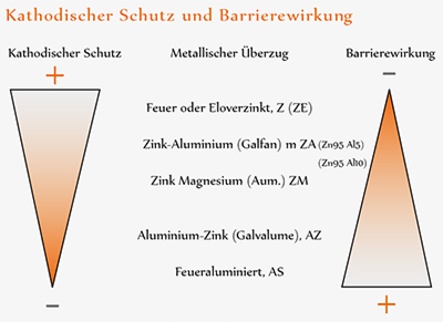 Eine gute Optik mit optimalem Korrosionsschutz und Barrierewirkung wird mit Zink-Aluminium erreicht, in dem eine festhaftende Zink - Aluminium - Legierung (Zn 95% / Al 5%), auf den Stahl aufgebracht wird.